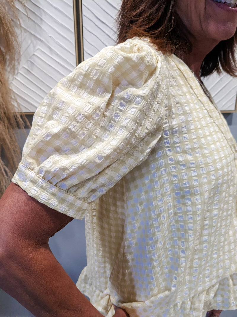 Sunlit Gingham Puff Blouse