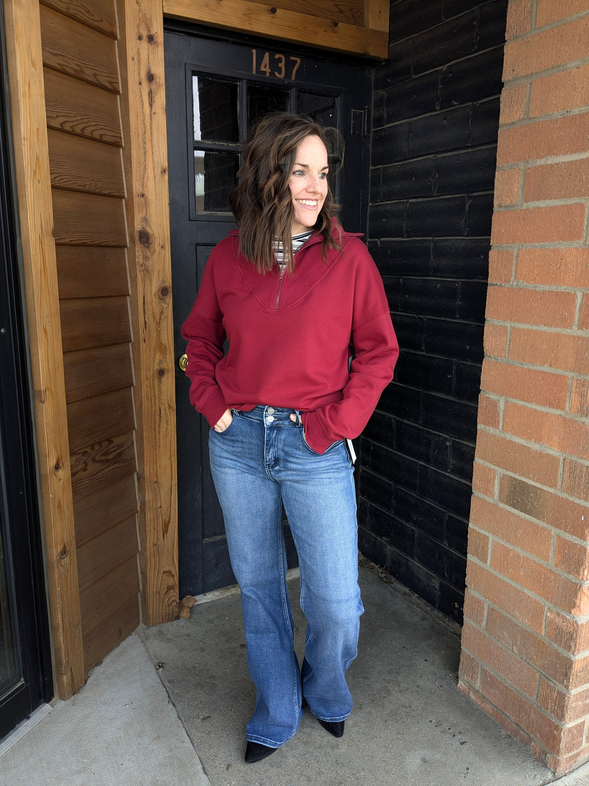 Special details: No distressing, double button at waist
