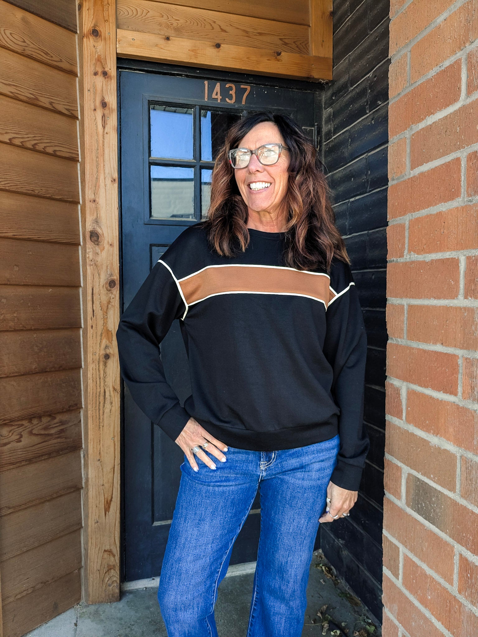 Special details: Butter soft, colorblock front detail, white shoulder seams.