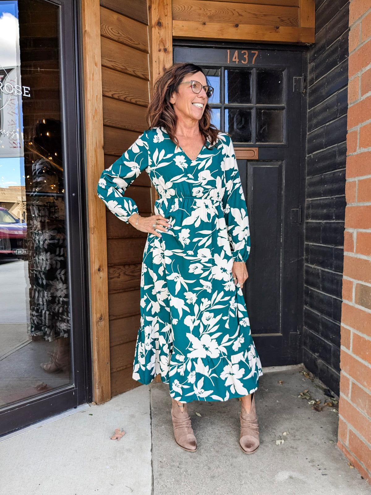 Special details: Long sleeve, elastic waist and cuffs, short tier at bottom.