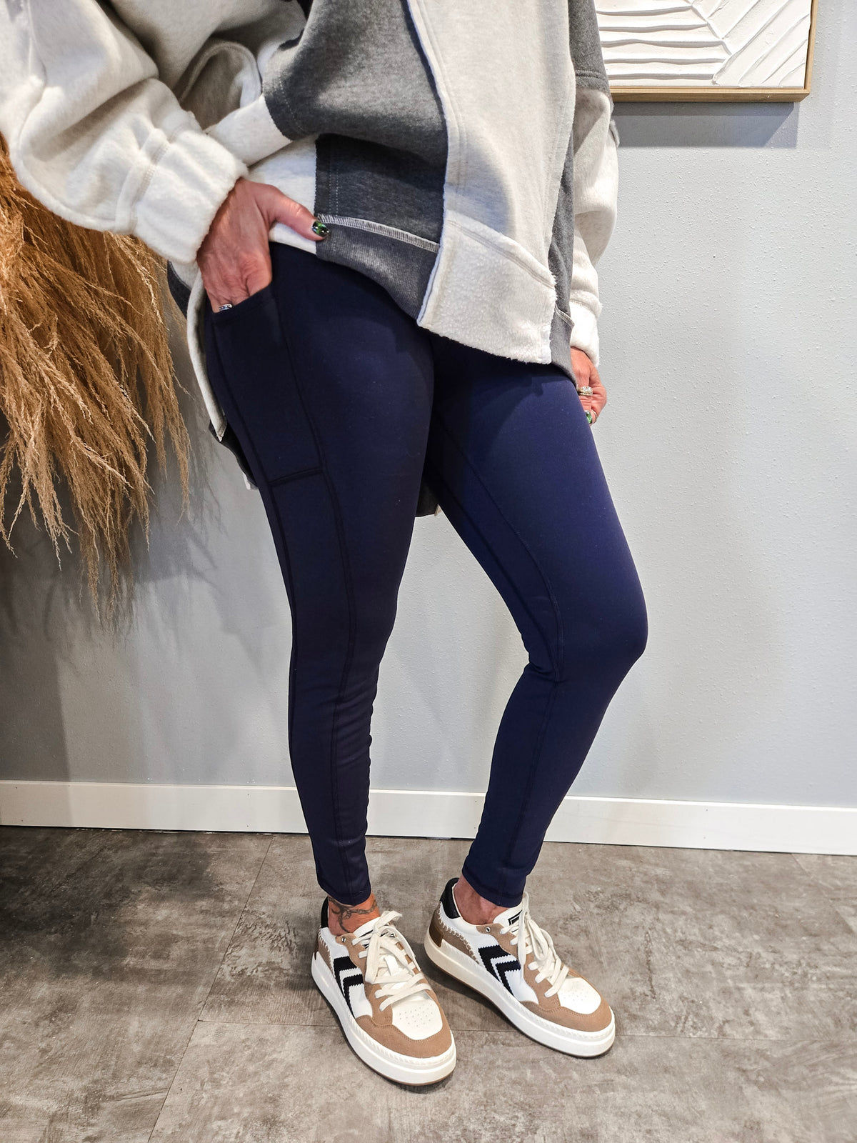 Special details: Fleece lined leggings, side pockets, large waistband