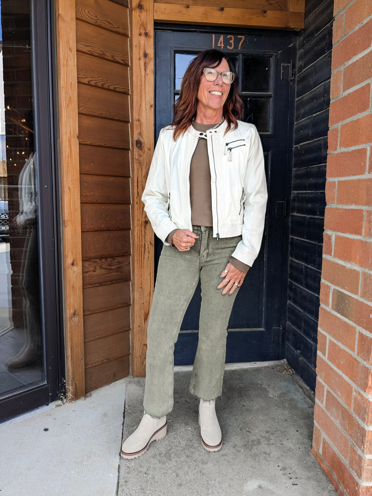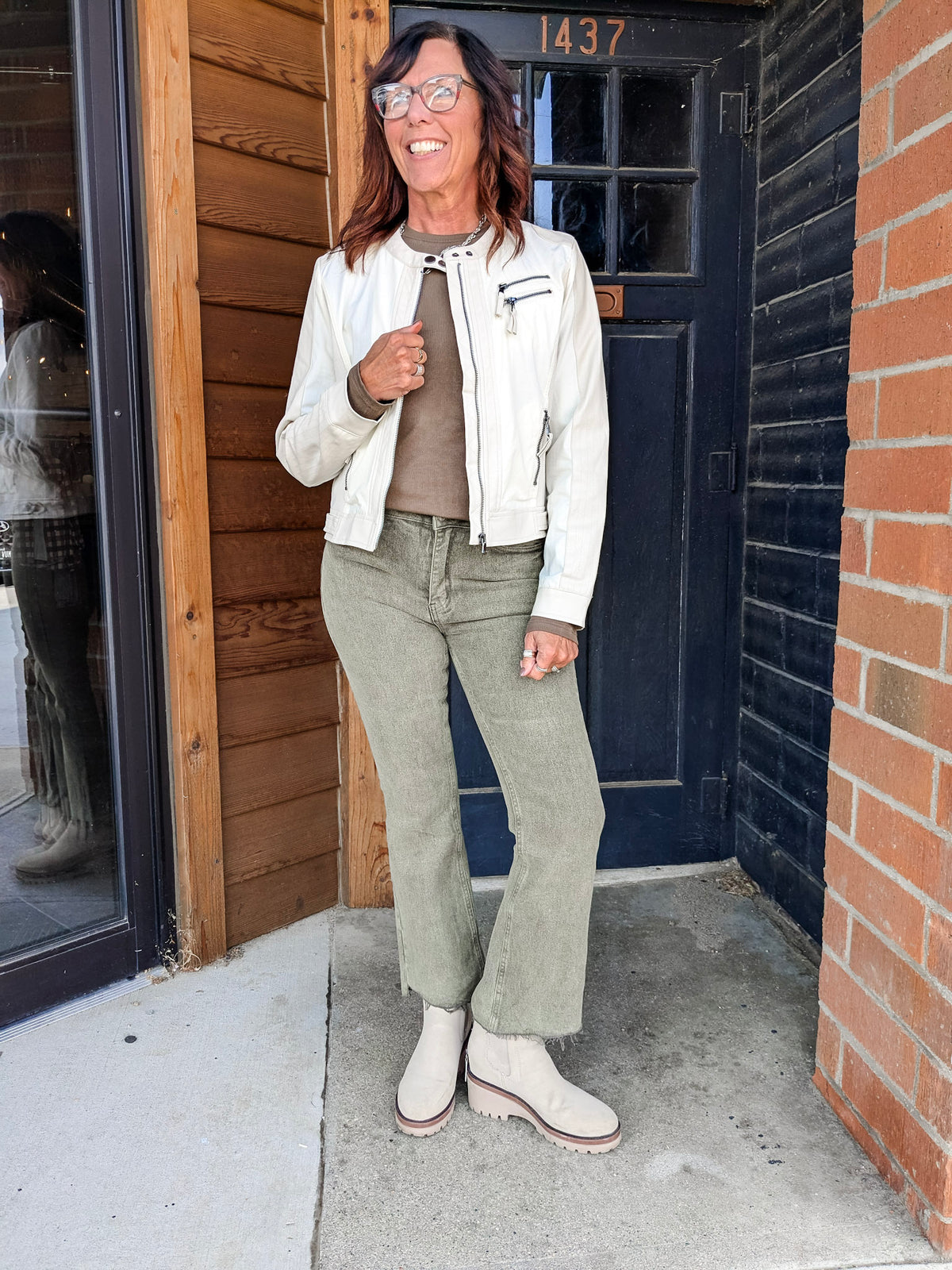 Special details: Multiple zipper pockets, zipper front, ribbed sides.
