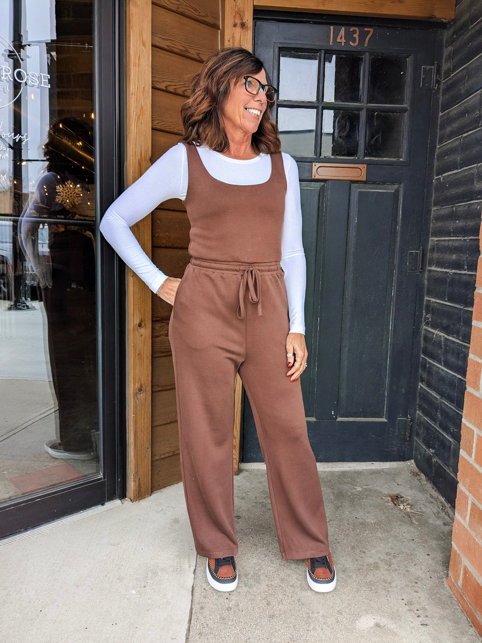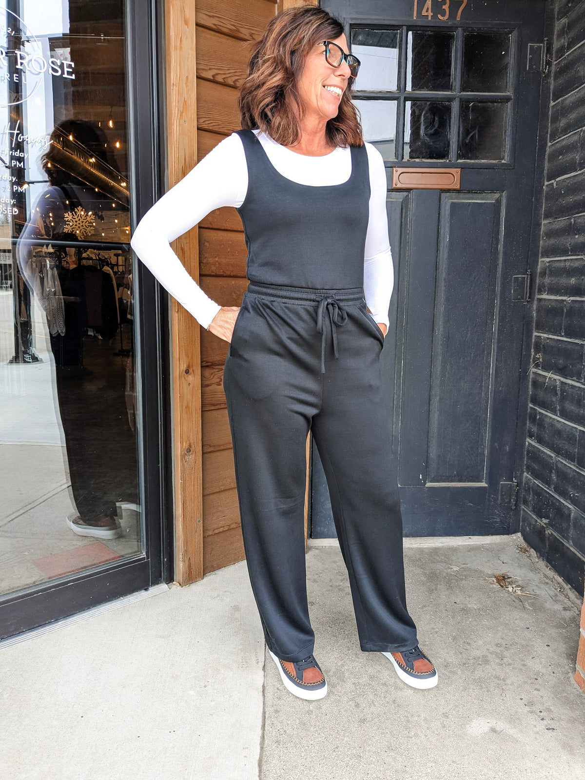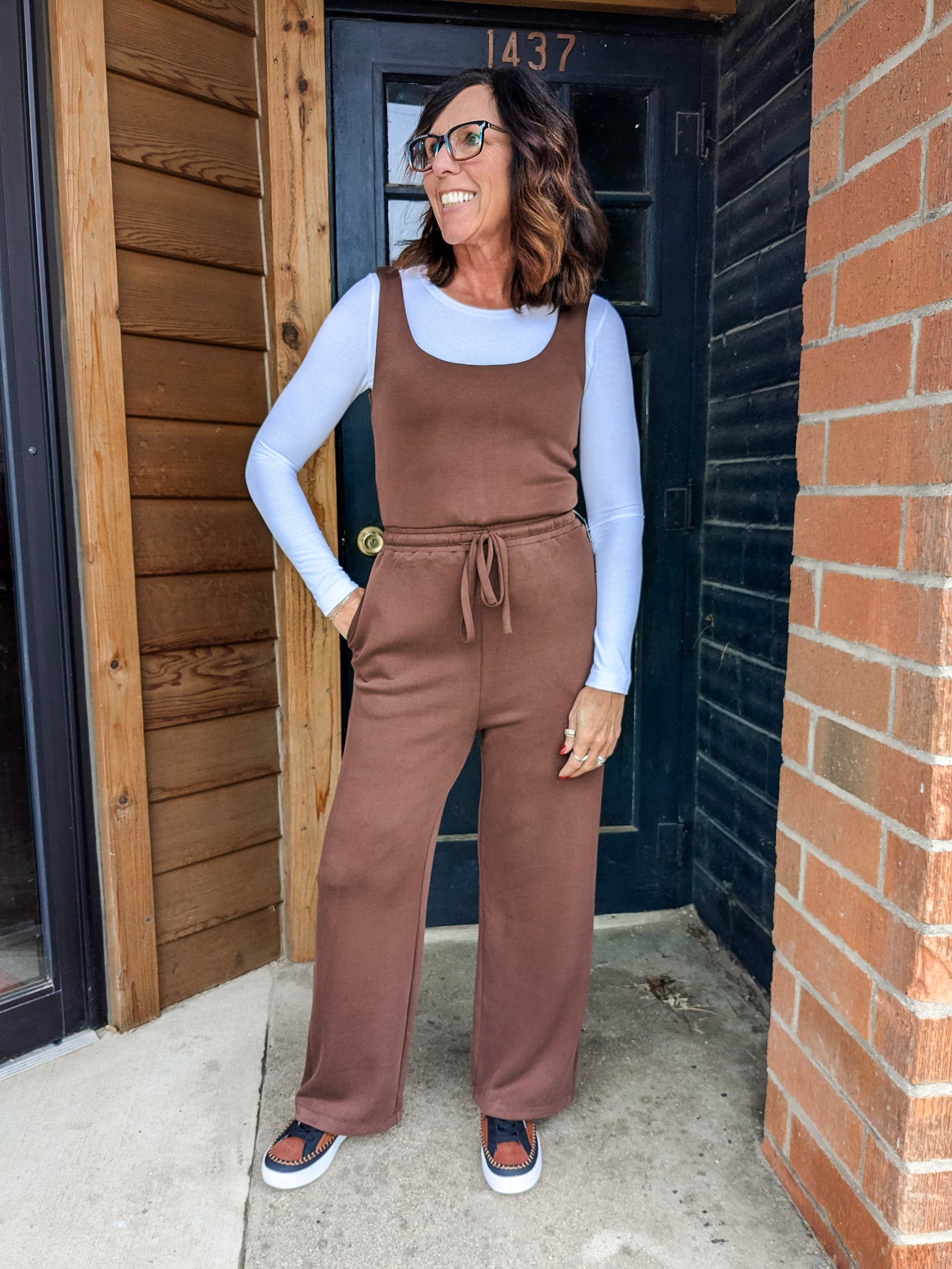 Special details: sleeveless jumpsuit, butter soft, elastic and tie waist, pockets.