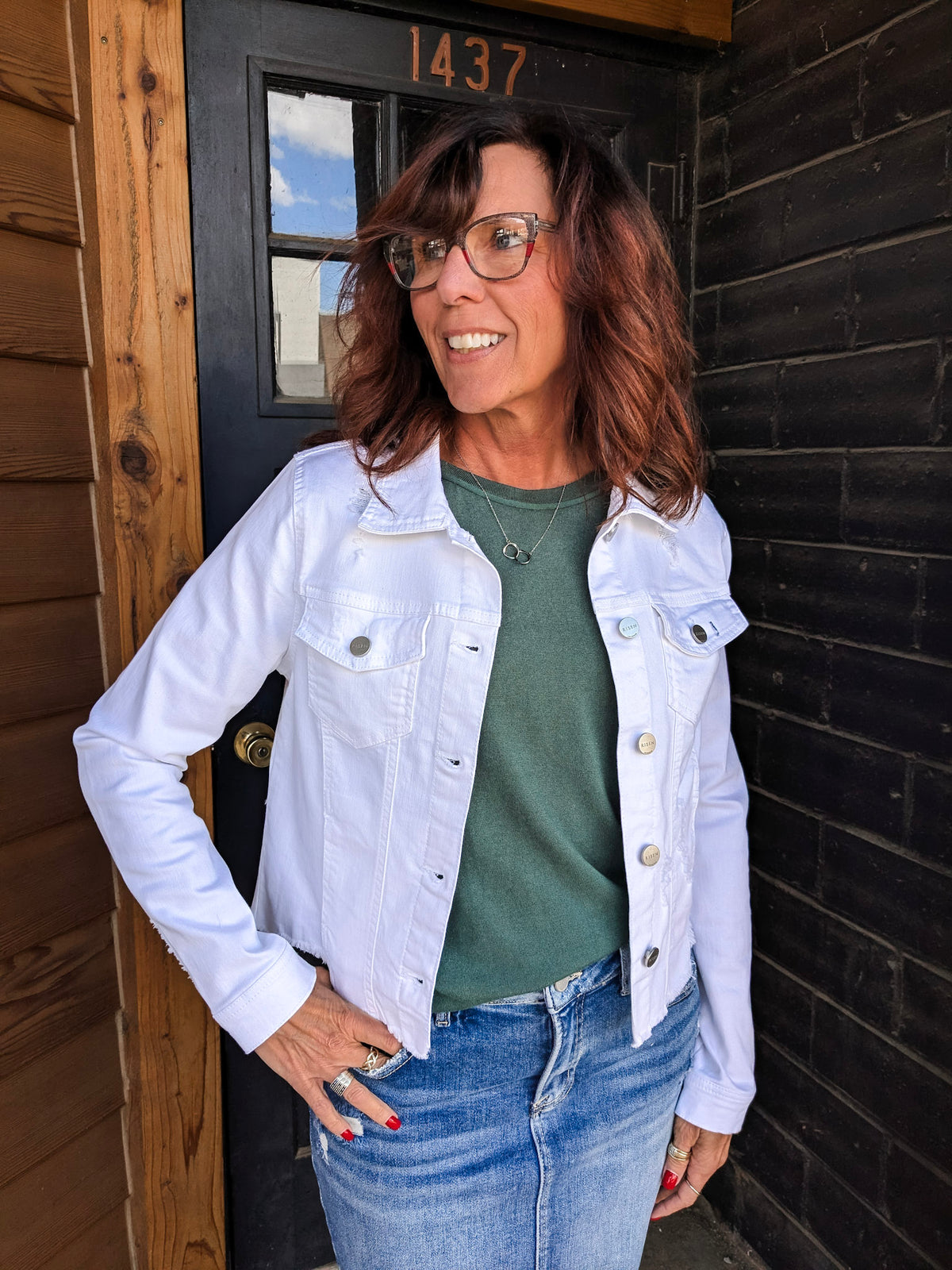 Special details: Light destress, pockets, button up, fray hem
