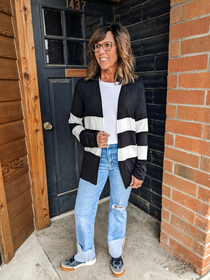 Colorblock Stripe Lightweight Cardigan - Black