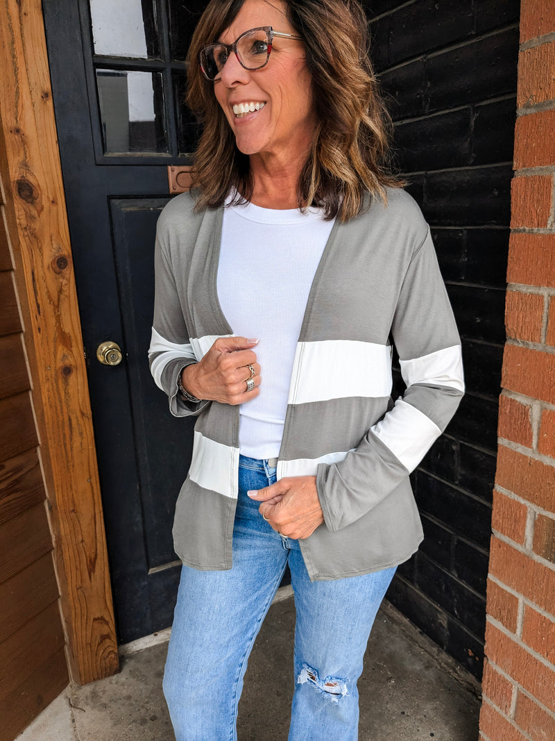 Colorblock Stripe Lightweight Cardigan - Olive