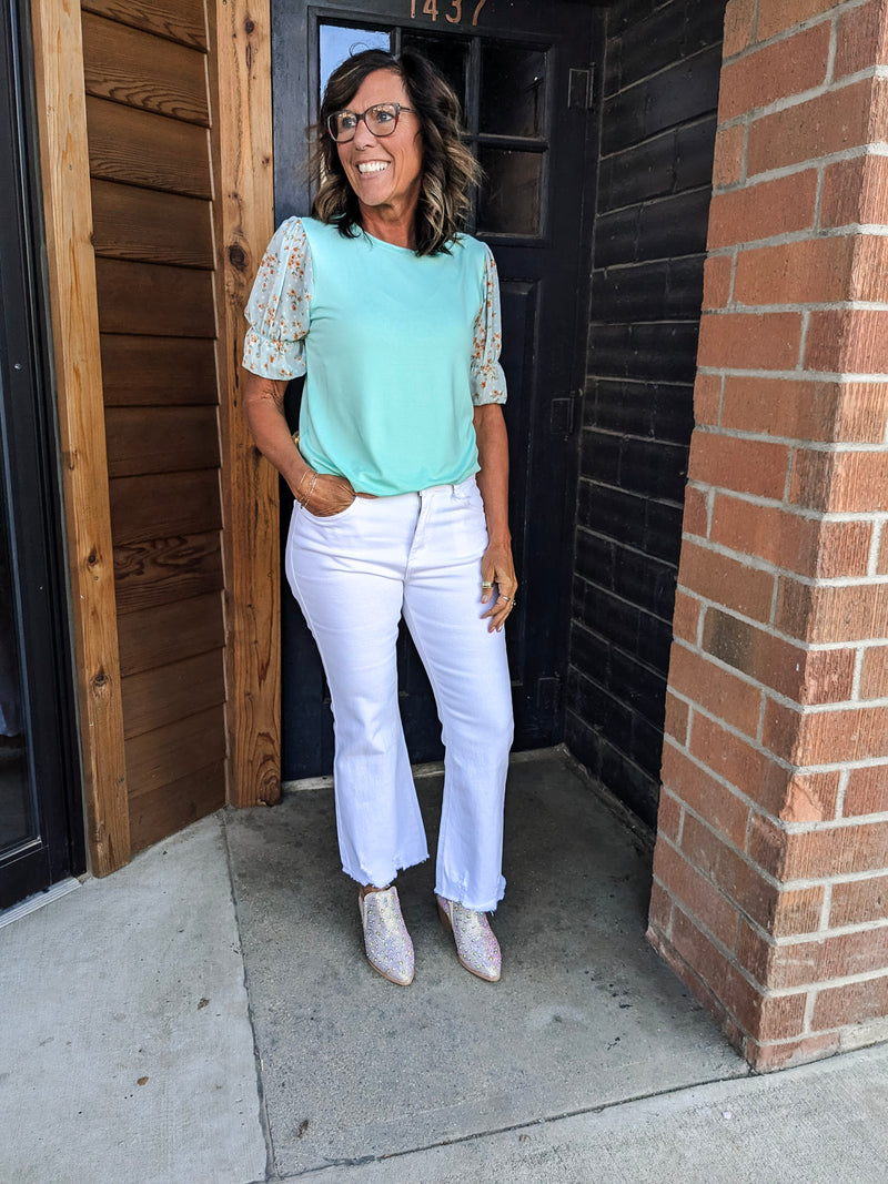 High Rise Crop Bootcut Jeans - White