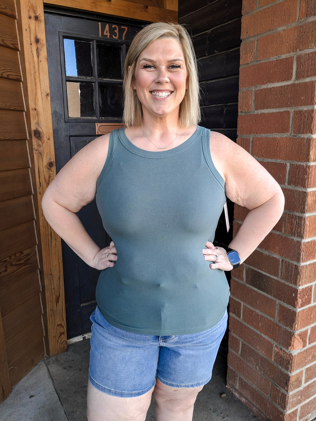 Rib Knit High Neck Tank Top - Dark Sage
