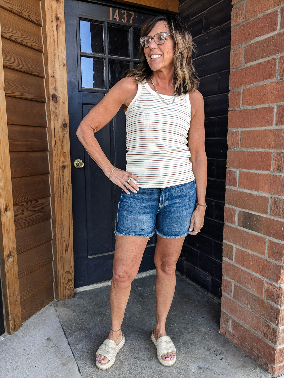 Rosy Ribbed Stripe Tank Top - Red Multi