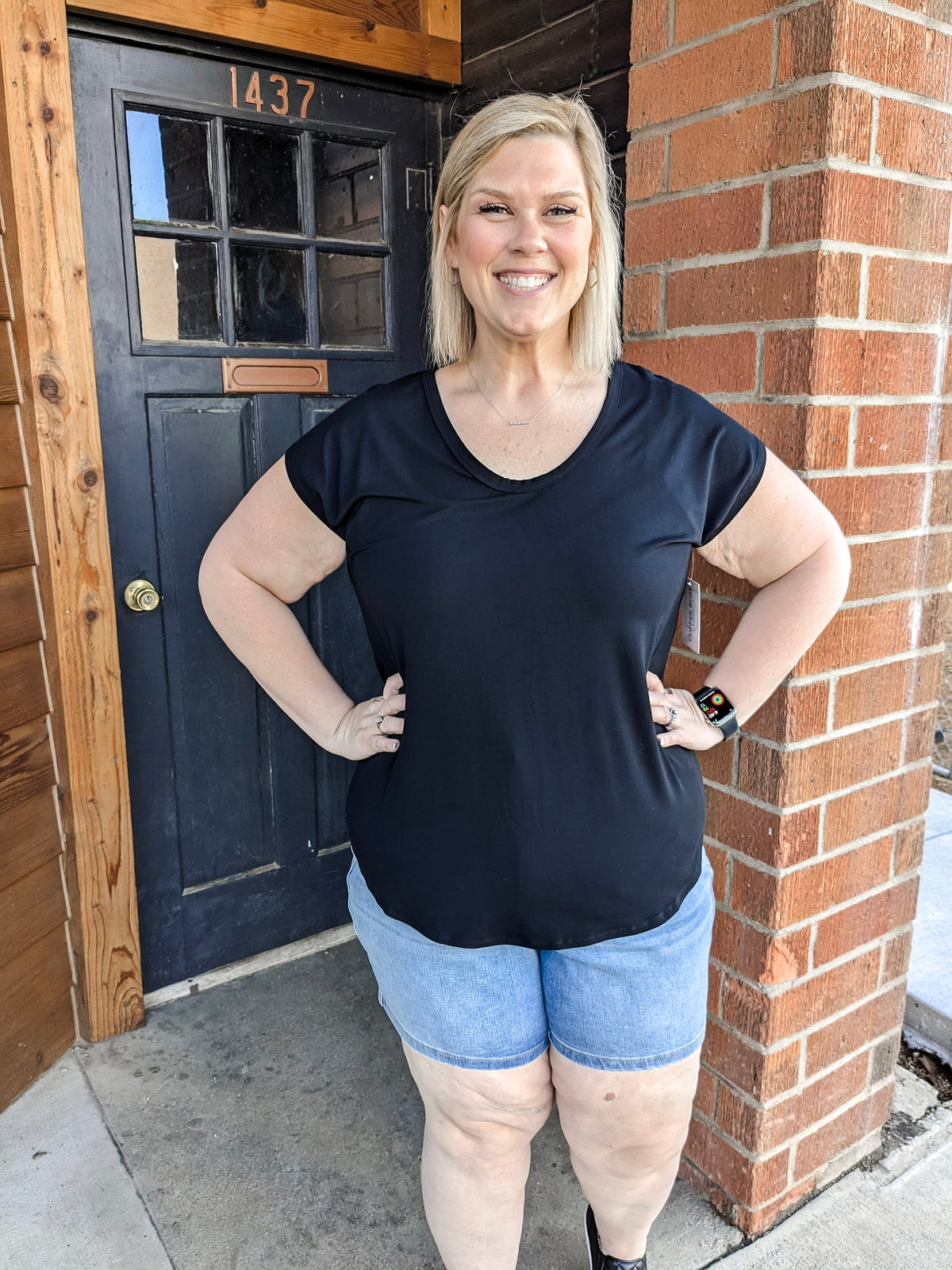Special details: Ultra soft, cap sleeves. Also available in Dusty Rose. S/M-3X