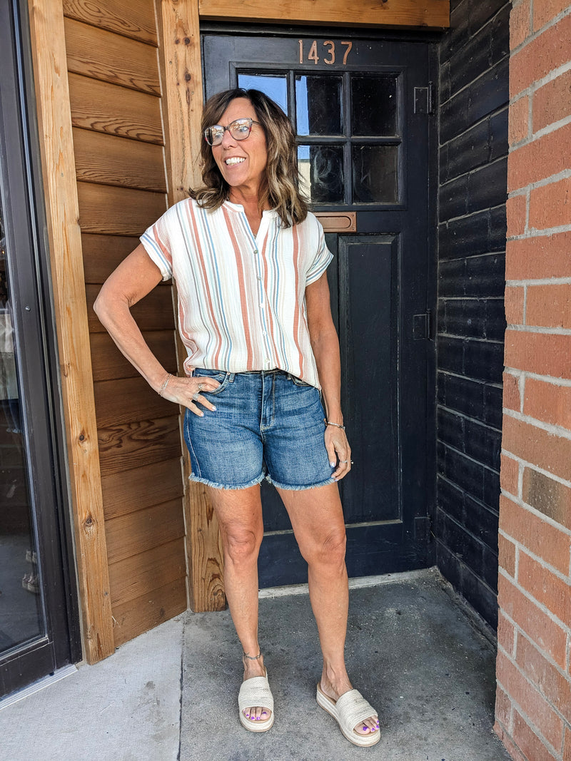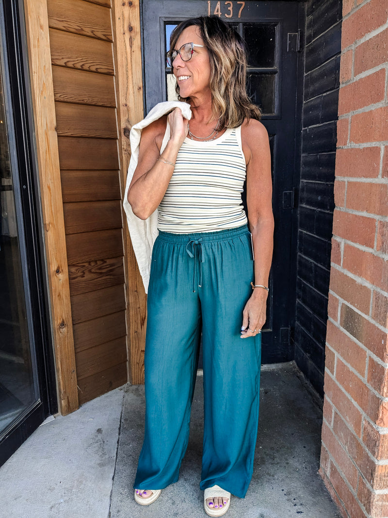 Rosy Ribbed Stripe Tank Top - Teal Multi