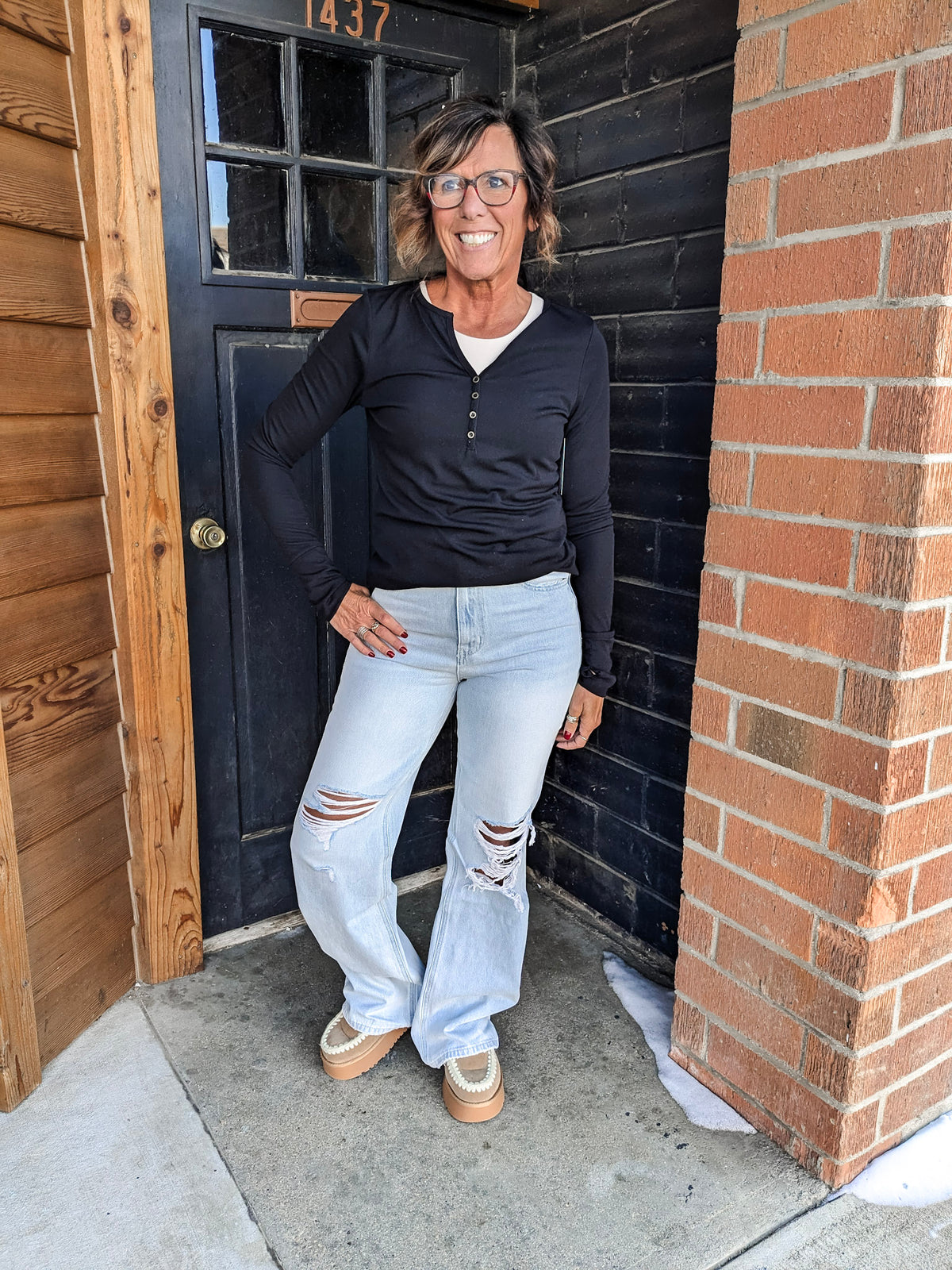 Special details: Distressing on the knees, light wash