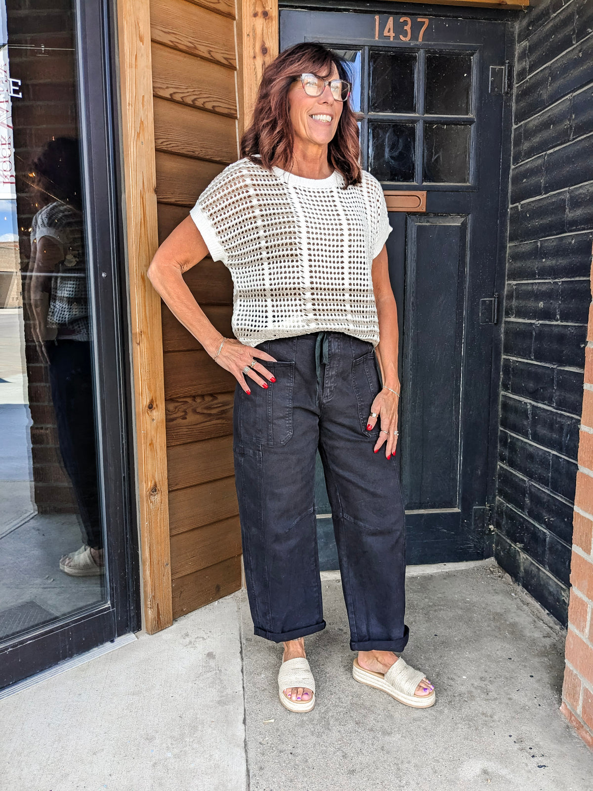 Special details: High rise, crop-cuffed, cargo pockets, drawstring waist
