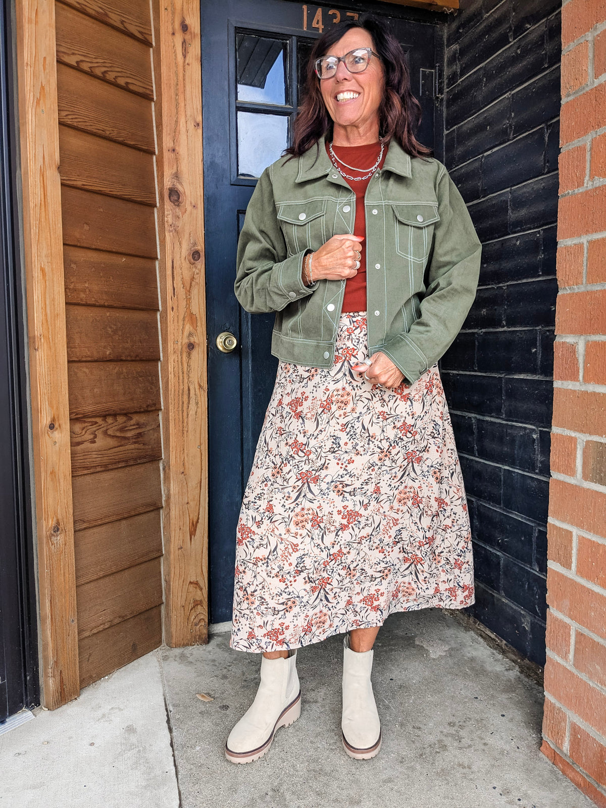 Special details: Front snap buttons, cuff snap buttons, chest pockets.