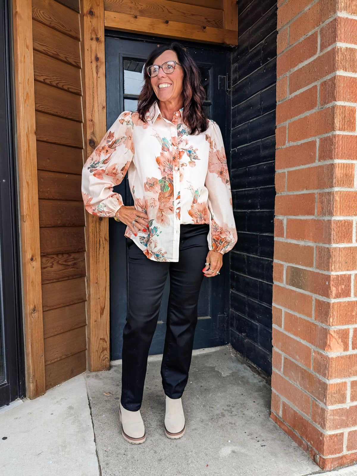 Special details: Button up, collar, elastic sleeve hem.